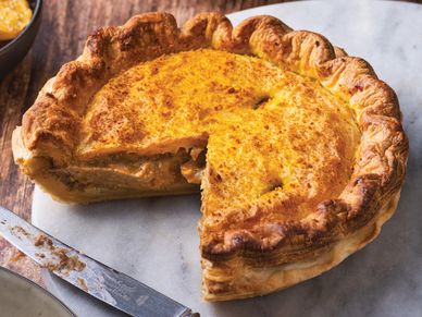 The family version of our butter chicken pie, the velvety flavour of tender chicken simmered slowly in aromatic spices, and encased in delicious, flaky pastry.