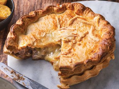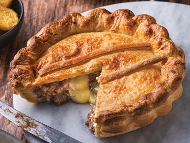 The family version of our steak and cheese pie, bursting with the flavour of prime, lean beef and fresh, tasty cheese, and encased in delicious, flaky pastry.